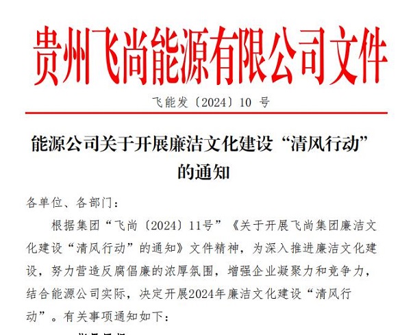 4月初,飞尚集团发布《关于开展廉洁文(wén)化建设“清风行动”的通知》。活动开展以来,集团各成员企业积极参与,按活动要求推进相关工(gōng)作(zuò),建立健全廉洁工(gōng)作(zuò)制度,营造廉洁文(wén)化浓厚氛围,為(wèi)“清风行动”的深入开展打下了坚实基础。