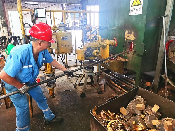 在最大的紫铜连续挤压机前,将全身上下裹得严严实实的車(chē)间主任张和平正忙着带领工(gōng)人安(ān)装(zhuāng)模具(jù),為(wèi)下一次开机生产(chǎn)做好准备。等到机器顺利地平稳运转,他(tā)才松了一口气,但此时后背早已被汗水浸透。